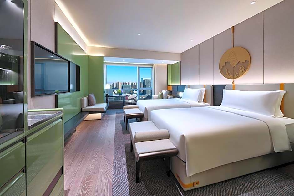 Guests will have a special experience as the double room offers a hot tub. Providing free toiletries and bathrobes, this double room includes a private bathroom with a walk-in shower, a bath and a hairdryer. The spacious air-conditioned double room provides a TV with cable channels, soundproof walls, a mini-bar, a tea and coffee maker as well as city views. The unit offers 2 beds.